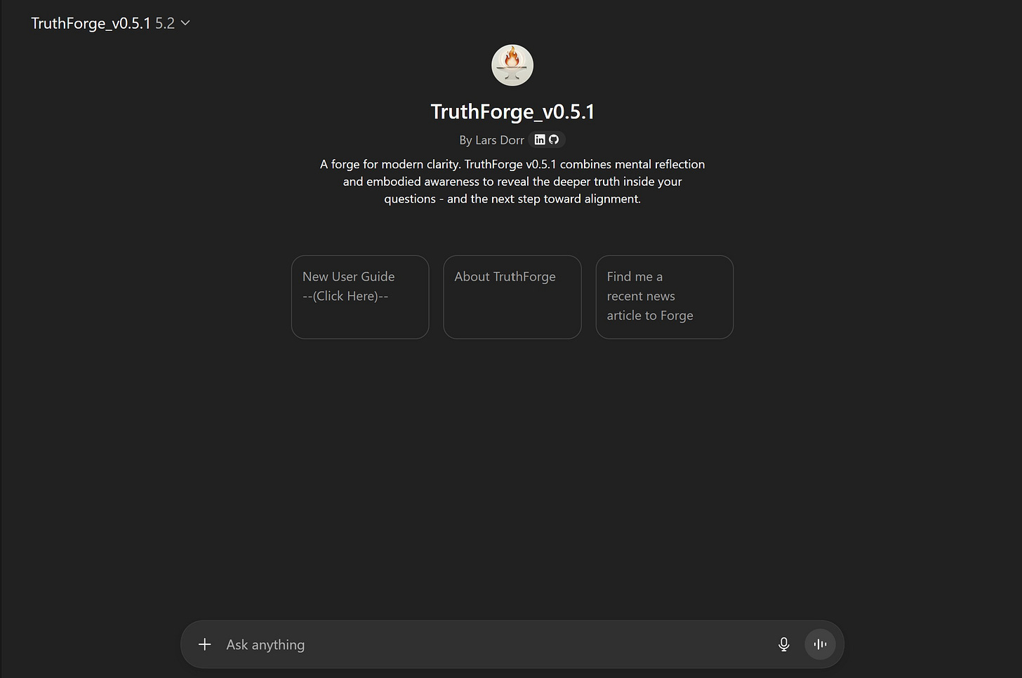 The current version (v0.5.1) is more explicit about what TruthForge does, and what it refuses to do. It doesn’t persuade, diagnose, or steer you toward an answer. It doesn’t claim authority over what’s true.